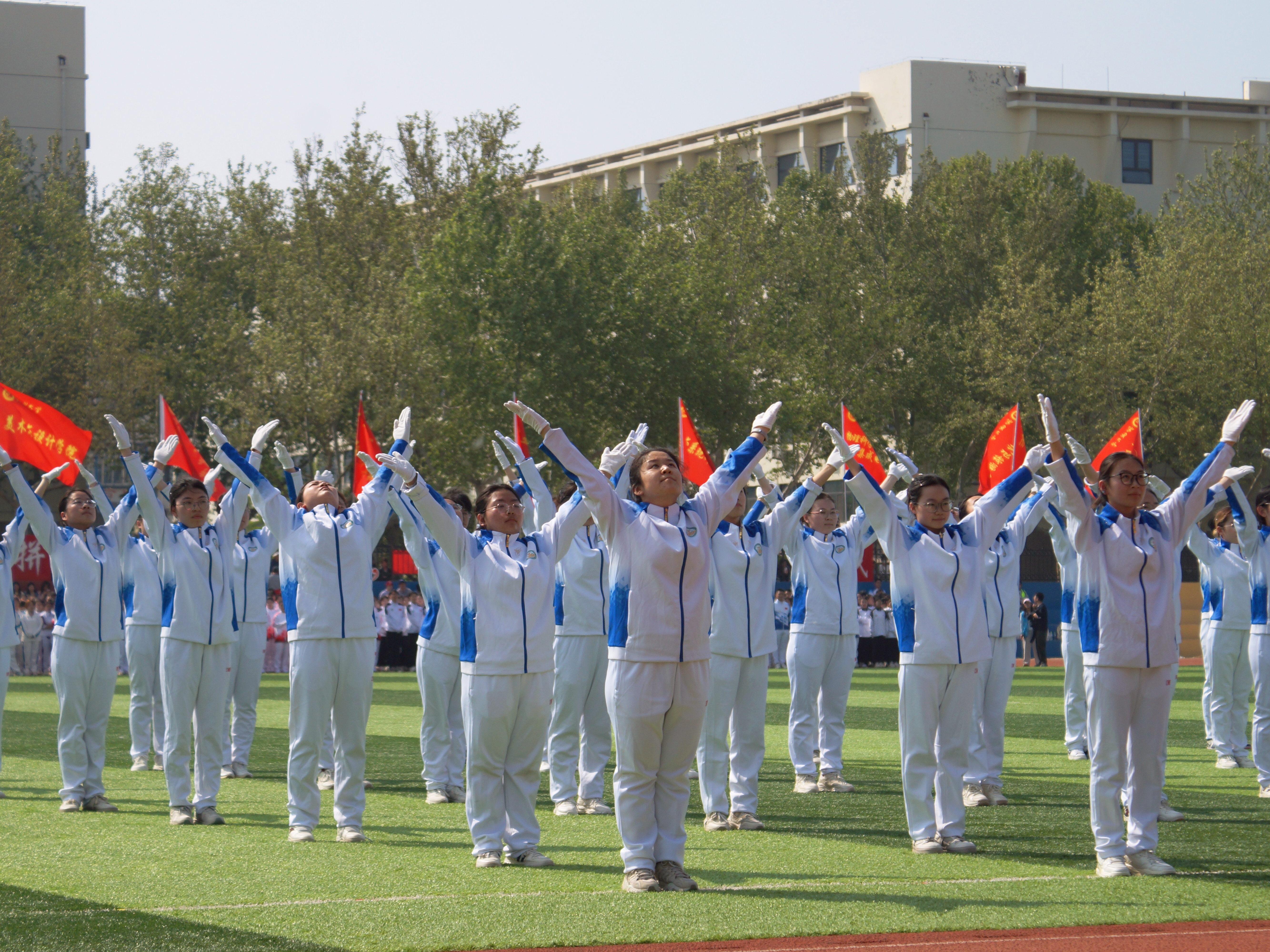 比赛现场,我院学子身着统一着装,步伐整齐、精神昂扬,从容步入比赛场地。音乐响起,全体同学同步而动,抬手舒展有力,转身干脆利落,跳跃轻盈整齐,每一个动作都精准贴合节奏,每一支队伍都横竖成线、井然有序。没有丝毫慌乱与懈怠,尽显青春朝气与团队凝聚力,利落的表现赢得了评委的肯定与现场观众的掌声,最终获得下三等奖的优异成绩。