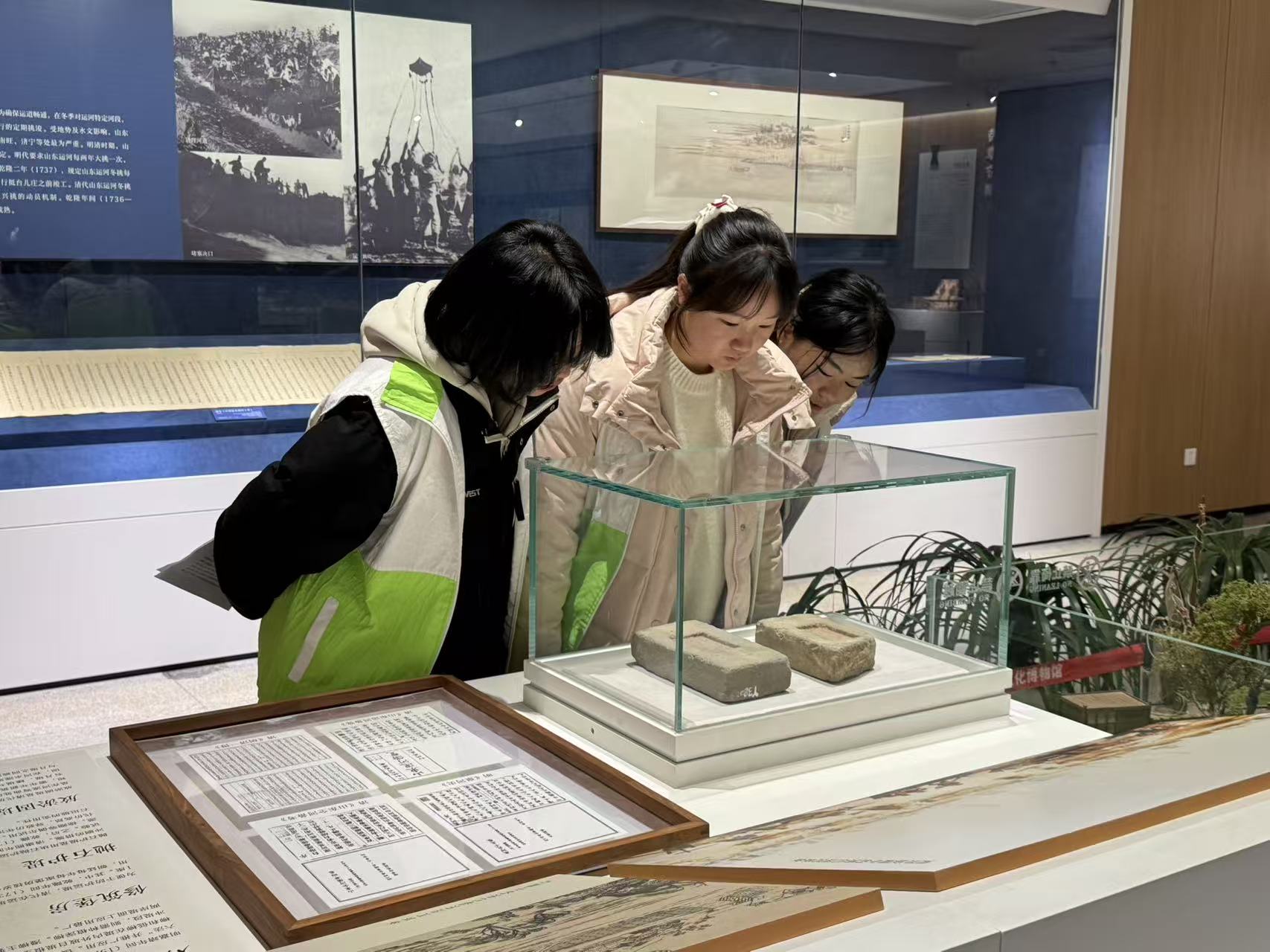置身博物馆中,同学们对运河聊城段的发展脉络、堤坝构造以及中国运河文化的悠久历史得到了全面的认识,大家仔细观看馆藏文物与图文展板,还体验到博物馆突破传统的展示方式,它借助3D技术、触屏交互、微缩短片等多种媒体手段,营造出沉浸式的参观氛围,令同学们印象深刻。馆内陈列的各类精美陶瓷艺术品,映照出古代人民的生活日常与社会风貌,也凸显出政府对运河文化保护工作的高度重视。